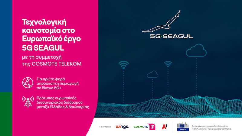 Ο πρώτος διασυνοριακός 5G Standalone ψηφιακός διάδρομος στην Ευρώπη ολοκληρώθηκε μέσα από το ευρωπαϊκό έργο 5G SEAGUL[1], στο οποίο συμμετείχε η COSMOTE TELEKOM. Για την αδιάλειπτη συνδεσιμότητα στην οδική διαδρομή μεταξύ Ελλάδας και Βουλγαρίας, δημιουργήθηκε ένας πρότυπος ψηφιακός διάδρομος (5G Corridor) με συνεχή κάλυψη 5G Standalone (5G+), μήκους 473 χιλιομέτρων στην οδική διαδρομή Βελεστίνο – Θεσσαλονίκη – Σόφια, και απρόσκοπτη συνδεσιμότητα στο διασυνοριακό τμήμα Προμαχώνας – Κούλατα. Πρόκειται για επίτευγμα που σηματοδοτεί μια νέα εποχή στην παροχή προηγμένων υπηρεσιών συνδεδεμένης και αυτοματοποιημένης κινητικότητας (Connected and Automated Mobility – CAM), σε τομείς όπως: η ασφάλεια, η άνεση και οι υπηρεσίες εφοδιαστικής αλυσίδας (logistics).
